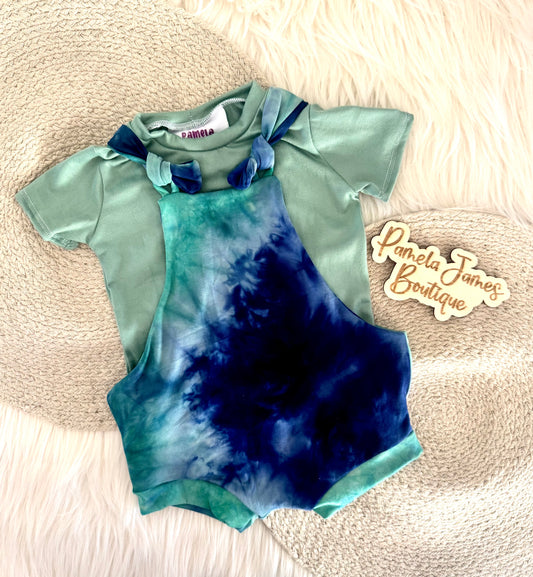Tie Dye Knotted Overalls w/ SS Tee-3/6M